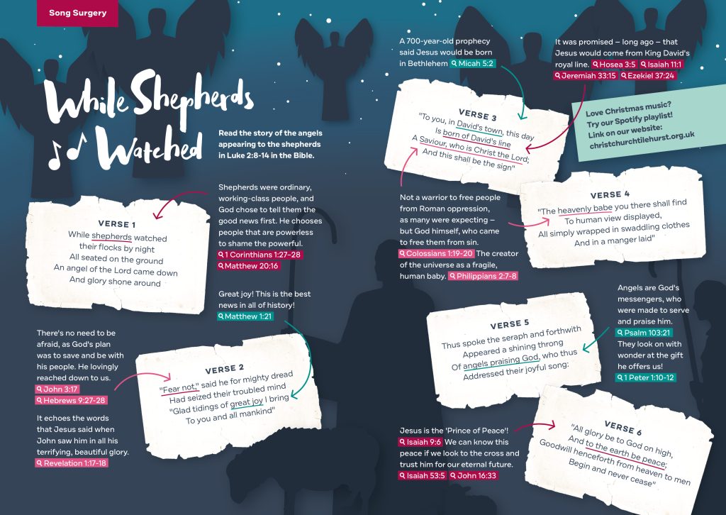 ‘While Shepherds Watched’ is a popular Christmas carol, enjoyed by many in the lead-up to Christmas. We’ve dissected the verses in this ‘Song Surgery’ (as we like to call it) and shown where the words or themes have come from the Bible!